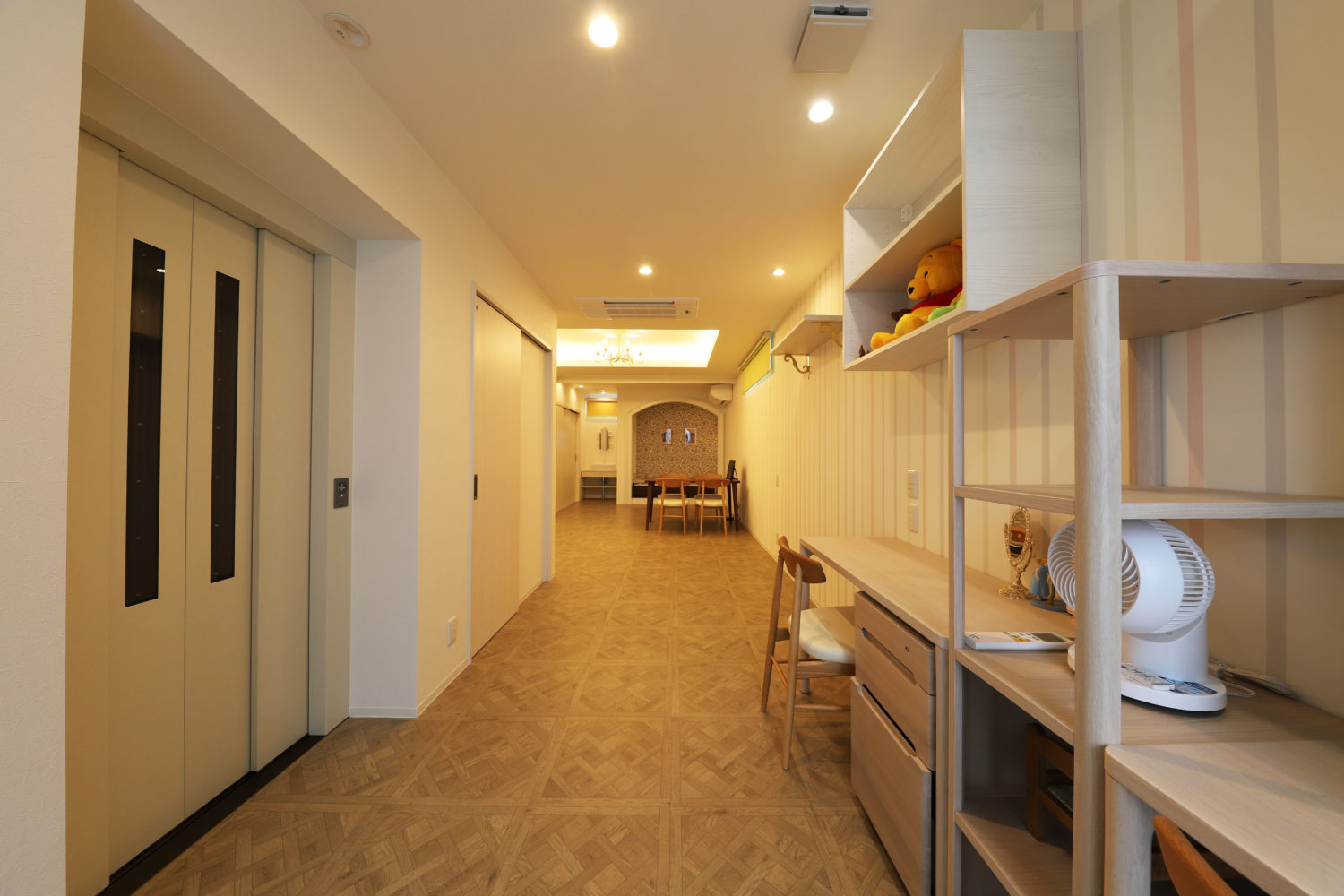 施主様とお子様が好まれるディズニーの世界観を随所に取り入れながらも、空間全体としては上質さを損なわないよう、バランスの取れたデザインとしています。